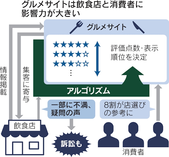 グルメサイト「食べログ」を運営するカカクコムに対し、外食チェーンが「サイトの基準変更で評価点が下がり、売り上げが減った」として訴えた訴訟の判決が16日、東京地裁であった。林文孝裁判長は、基準変更が独占禁止法が禁じる「優越的地位の濫用」に当たると判断した。裁判所は、チェーン店の請求を認め、カカクコムに対して3840万円の支払いを命じた。